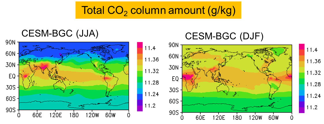 • -CESM-BGC (Community Earth System Model ? Biogeochemical) reasonably reproduces reducing concentration of carbon dioxide in the atmosphere over Northern hemisphere due to growth of plants